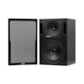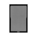 Akustisch transparente Abdeckung aus Stoff, Befestigung mit integrierten Plastick-Nieten.